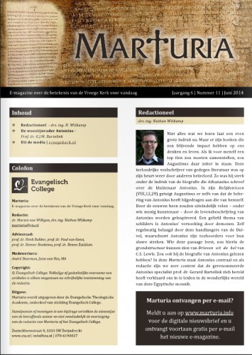 Marturia wordt gratis als e-magazine aangeboden. De nieuwe editie van Marturia kunt u direct openen door op de afbeelding rechts te klikken, of te surfen naar onze website: www.marturia.info. Het is mogelijk de pagina op volledige grote te bekijken en in te zoomen op delen van de pagina. Leest u liever van papier, dan kunt u Marturia via ►deze link downloaden als PDF-bestand en desgewenst zelf uitprinten.