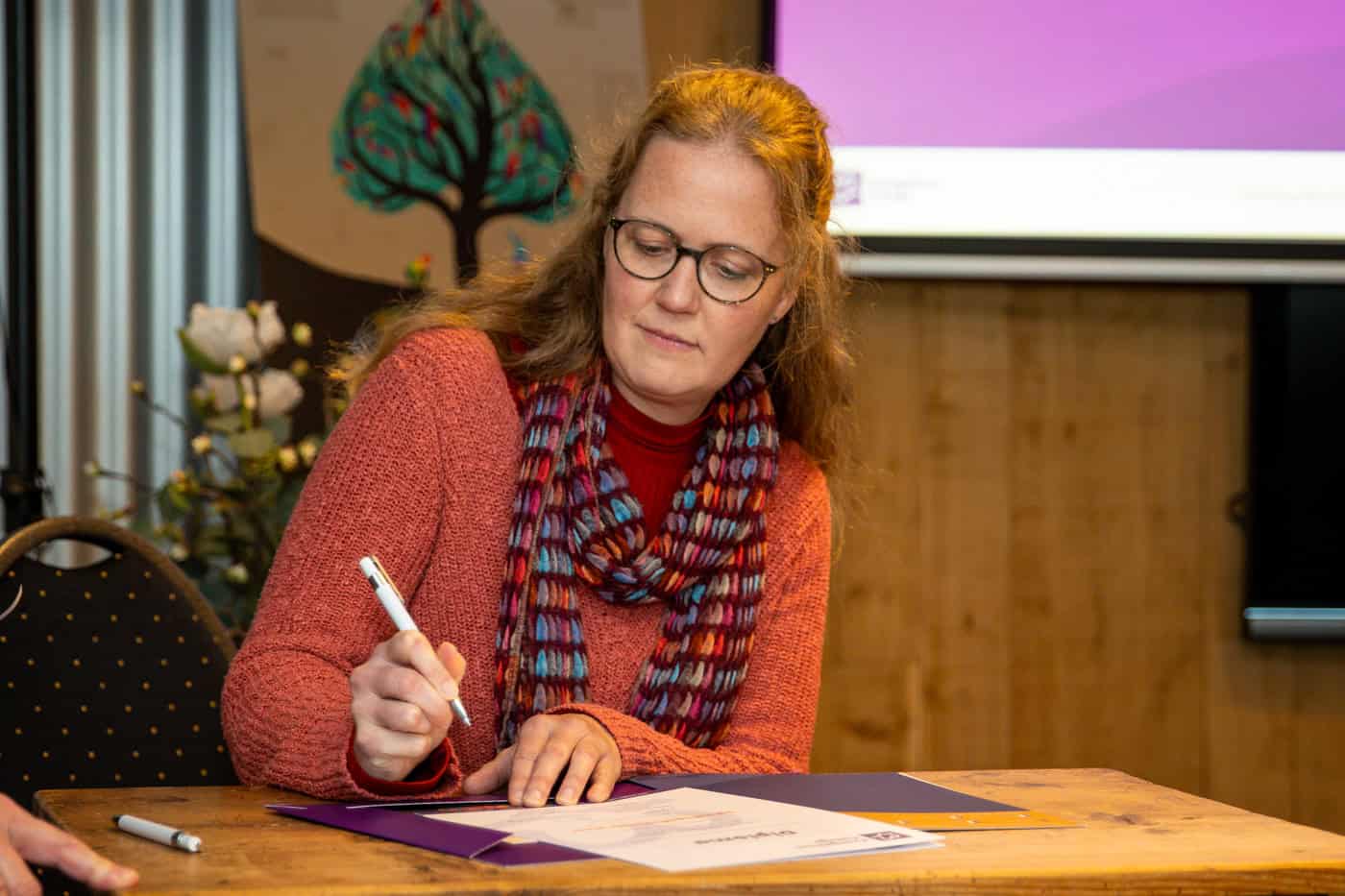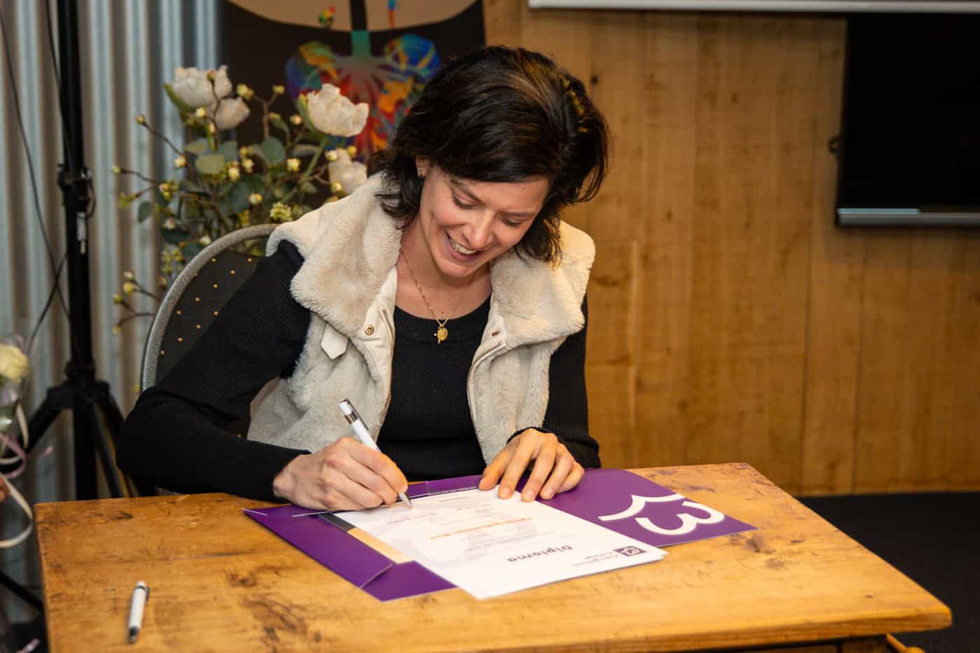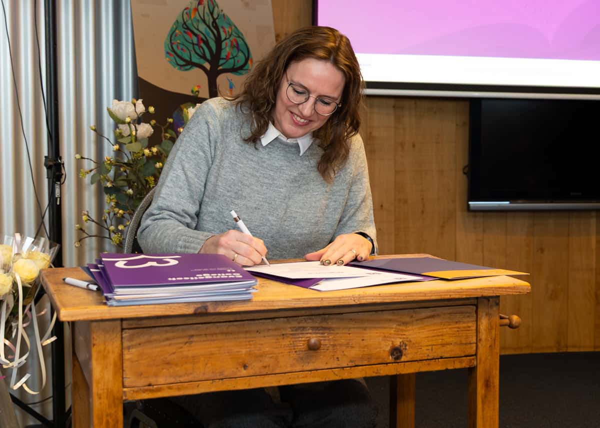 Op zaterdagmiddag 22 november was het tenslotte tijd voor de diplomeringsdienst van de Opleiding Pastoraal Werk. Zes aanwezige studenten namen hun getuigschrift of diploma in ontvangst, waarvan één via Zoom. Bijzonder dit jaar was dat we voor het eerst de geaccrediteerde post-hbo diploma’s van het CPION konden uitreiken. Docenten Janine Lemans, Marja Krans en Hans Alblas spraken ieder een paar studenten toe, waarop ze hun diploma in ontvangst mochten nemen en ondertekenen. Na de dienst werd de diploma-uitreiking gevierd met een borrel.