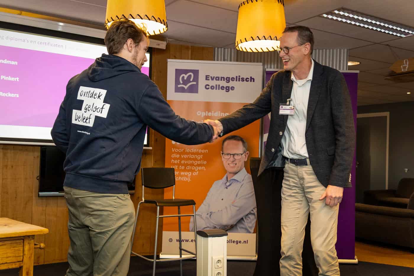 Feest bij het Evangelisch College! In november mochten we tijdens vijf feestelijke diplomeringsdiensten onze studenten hun diploma overhandigen. In totaal ontvingen dit jaar 127 studenten een getuigschrift, certificaat of diploma, waarvan 40 gediplomeerden deze ontvingen in de verschillende diensten.