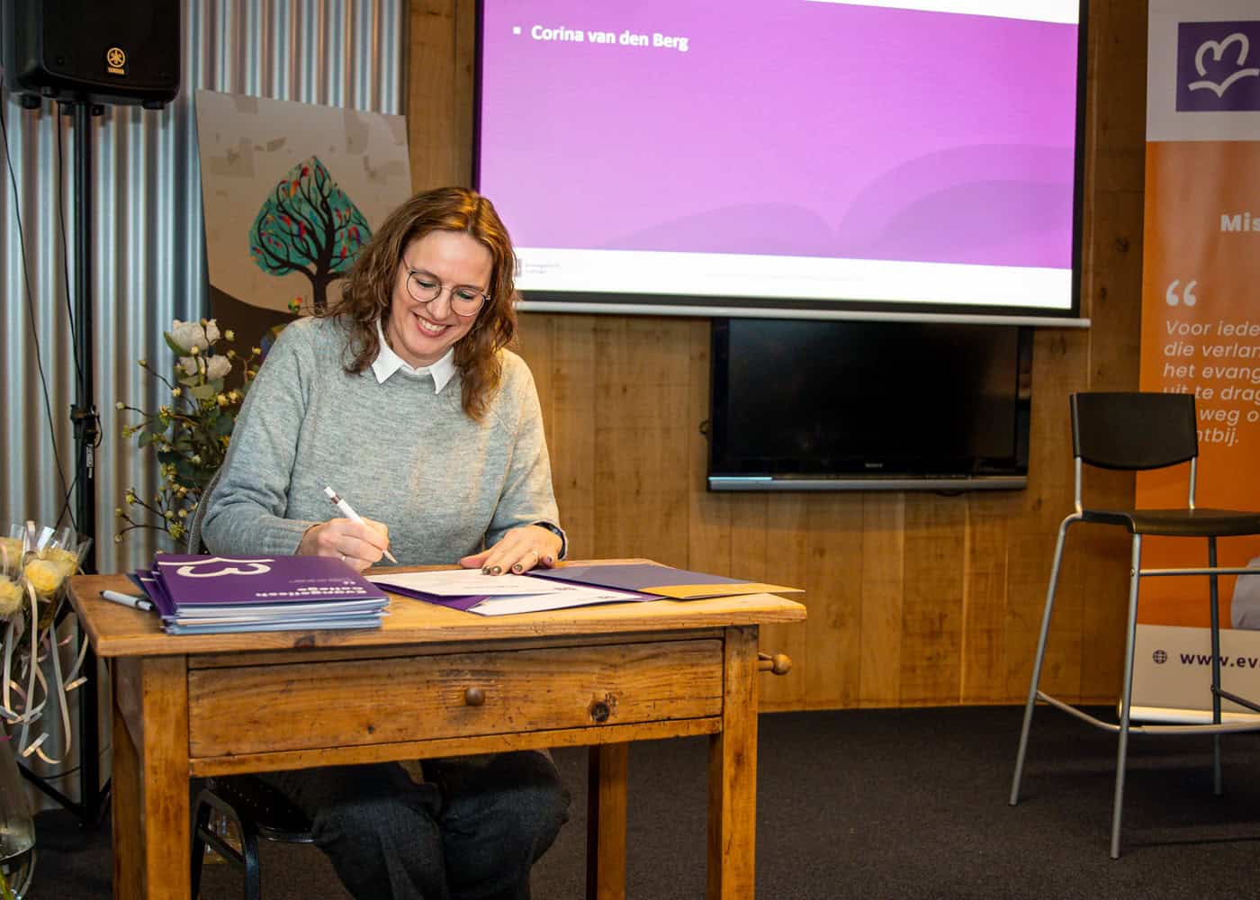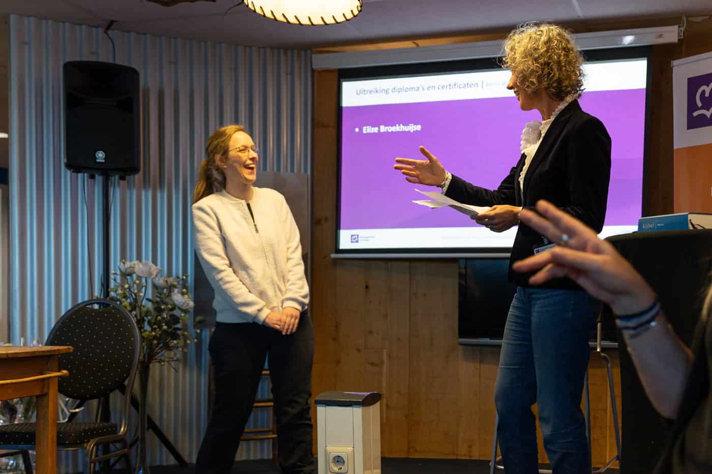 Ook op zaterdag 15 november stond de diplomeringsdienst van de Sprekersroute op het programma. Acht aanwezige studenten ontvingen hun certificaat van het programma dat we samen met het Baptisten Seminarium aanbieden. Ze werden persoonlijk toegesproken door docenten Metta Wierenga en Jaap-Harm de Jong. De dag werd afgesloten met een feestelijke borrel.